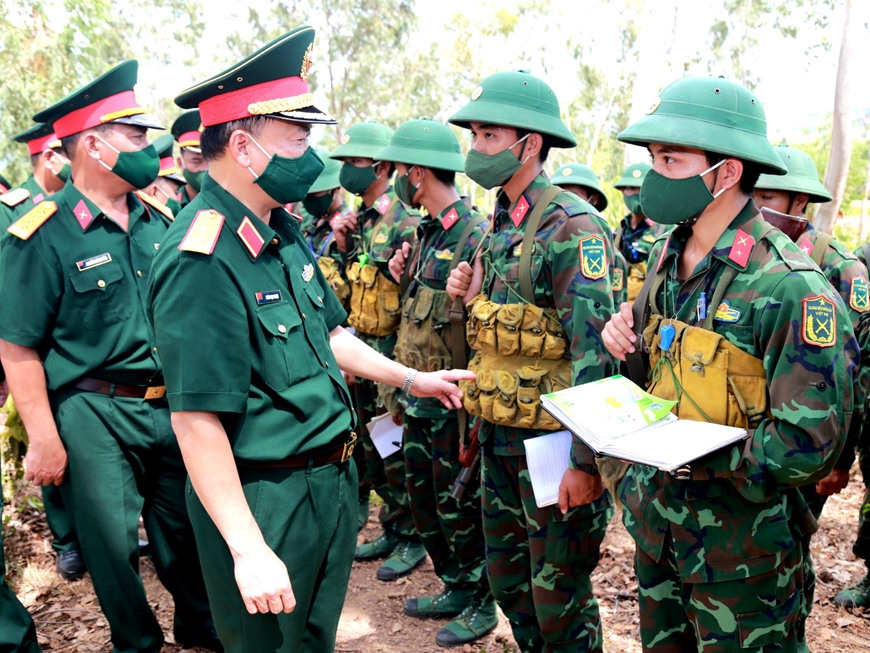 Trung tướng Thái Đại Ngọc, Ủy viên Trung ương Đảng, Tư lệnh Quân khu 5 kiểm tra công tác huấn luyện, sẵn sàng chiến đấu tại Trường Quân sự Quân khu 5 _Ảnh: qdnd.vn